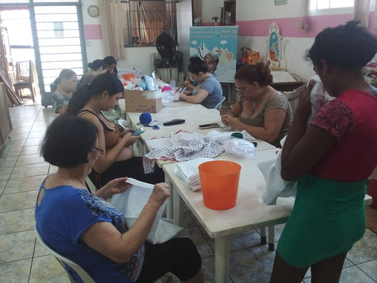 Ontem na Oficina do Bebê, tivemos a visita da lider da Pastoral da Criança: Pascoalina e outras Integrantes. Que vieram aprender a fazer as Mantas e outros itens que compõe o kit de enxoxal.